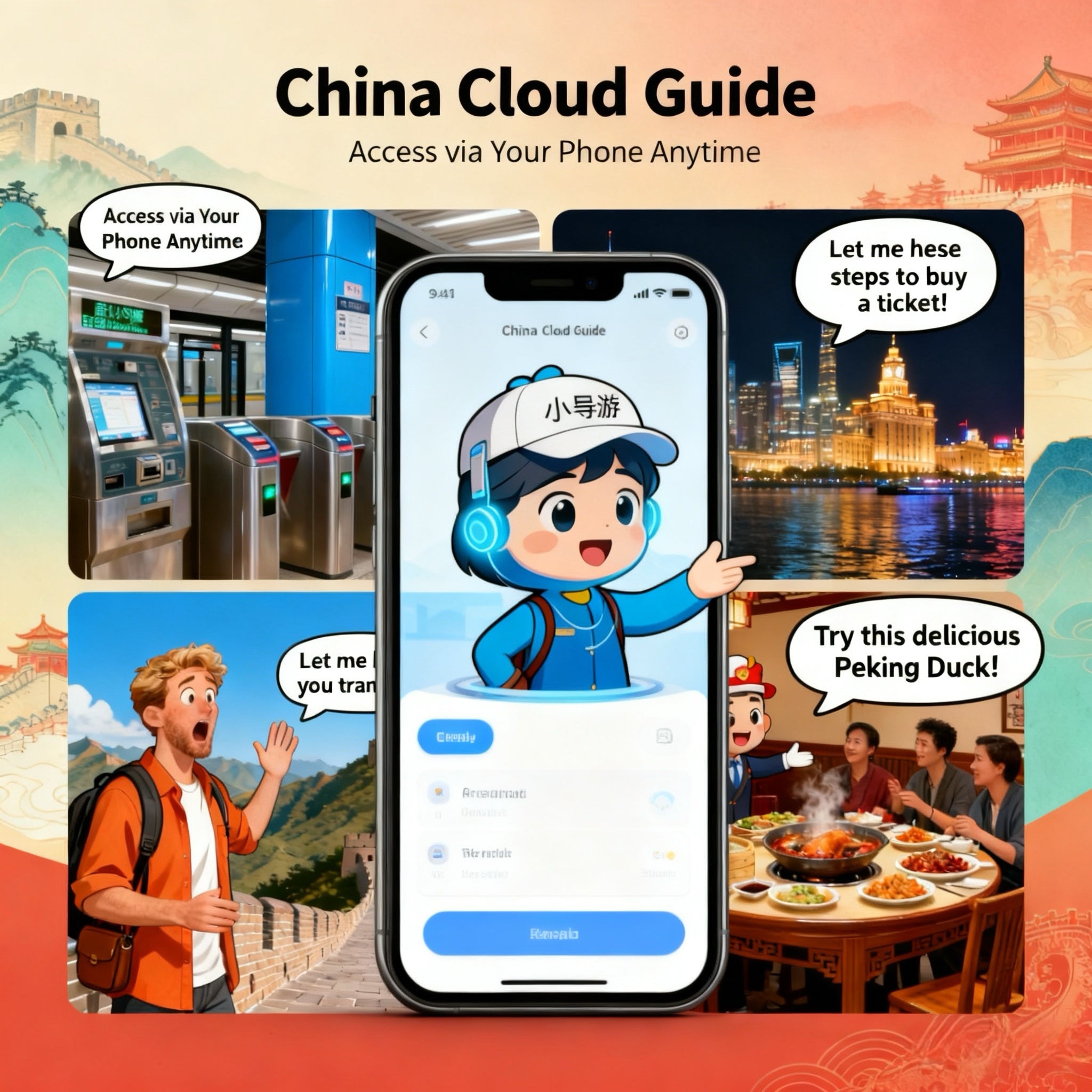 🌏 Your Pocket-Sized China Travel Guide, Always Within ReachAt Cloud Guide China, we redefine "travel assistance" for international visitors— all through your smartphone . No more bulky guidebooks, confusing translation apps, or last-minute panic. We turn your mobile device into a personal Chinese travel companion, delivering tailored support that follows you from airport arrival to departure. Here's how we make your China trip smooth, affordable, and unforgettable: